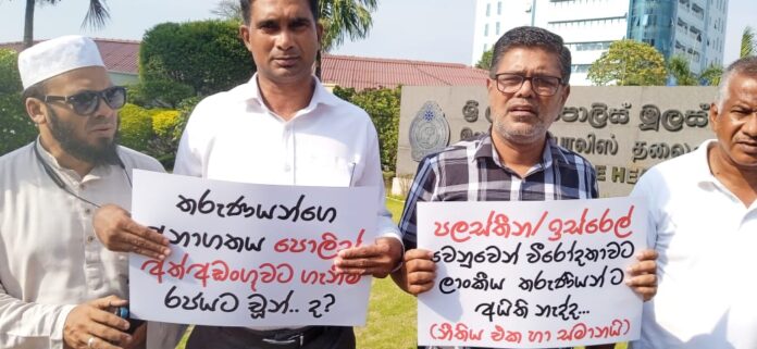 Protesters in Colombo are demanding the release of Mohamed Rusdi (also reported as Mohamed Rushdie), the 20-year-old detained under the PTA for a Gaza solidarity sticker.