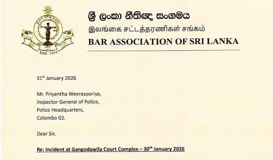 The Bar Association of Sri Lanka (BASL) has formally urged the Inspector General of Police, Mr. Priyantha Weerasooriya, to expedite investigations and ensure accountability following a serious incident that unfolded outside the Nugegoda Court Complex on 30 January.