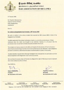 The BASL emphasized that the incident poses a direct threat to the professional duties of Attorneys-at-Law and undermines the due process of the judiciary. “Such conduct sets a dangerous precedent and directly erodes the administration of justice in the country,” the letter stated.