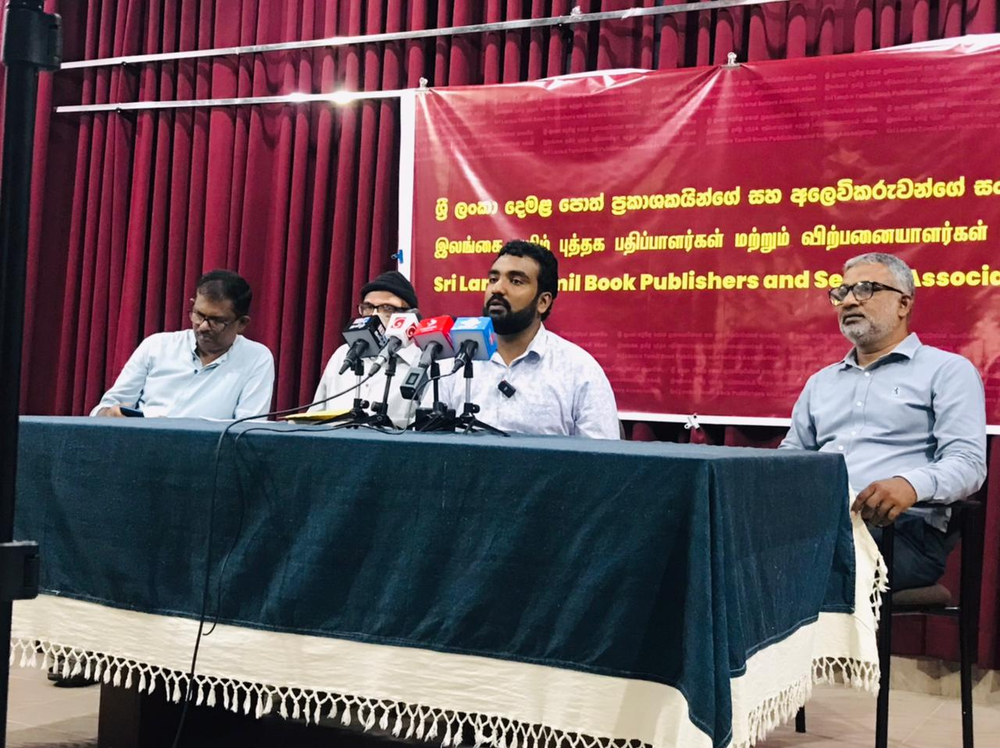 Sri Lanka Tamil Book Publishers and Sellers Association addressing a recent press conference in Colombo.