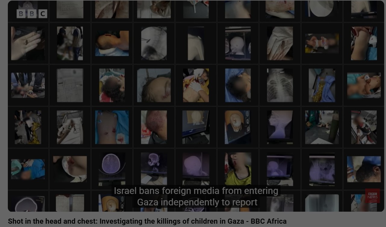 If you have not watched the BBC documentary on the killing of children in Gaza, please watch it. They documented over 160 cases. 95 of the children were shot in the head and chest.