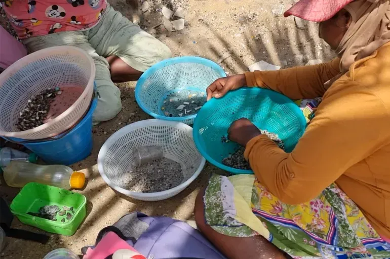 In the sweltering heat of western Sri Lanka, nearly 200 women are still busy collecting plastic nurdles washed ashore, three years after the X-Press Pearl disaster. Image by Saroj Pathirana/Al Jazeera.