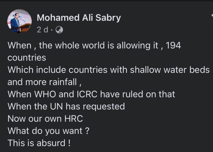 Meanwhile, Justice Minister All Sabry says that mandatory cremation of Muslum victims of Covid 19 is absurd.