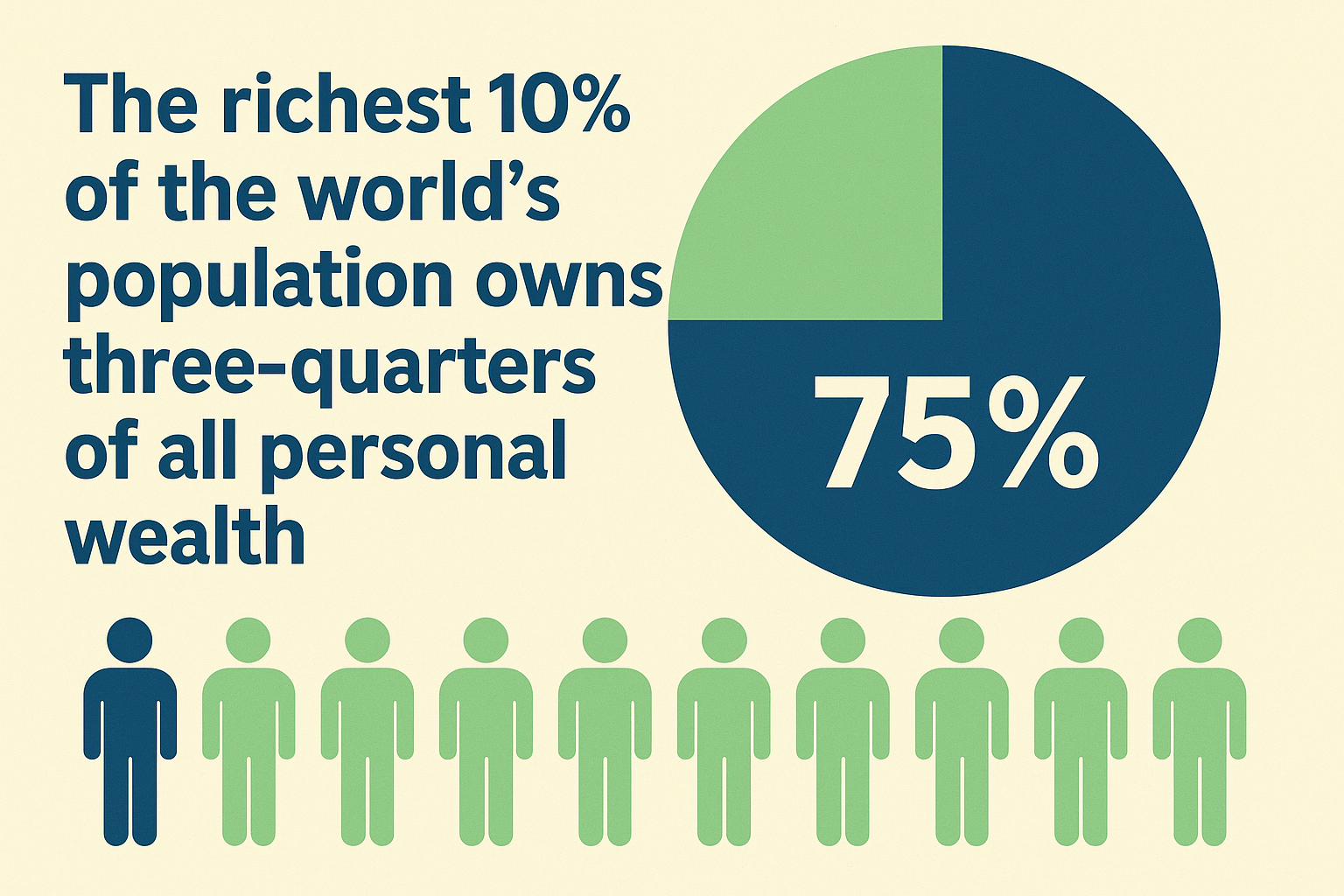In 2025, the wealthiest 10 percent of the world’s population owned 75 percent of global wealth, the middle 40 percent held 23 percent, and the bottom half controlled only 2 percent.