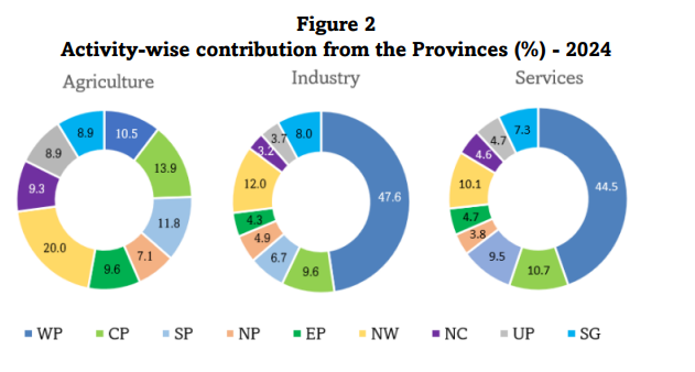 - Services: Again, Western Province leads with 44.5%, while Central and North Western trail at 10.7% and 10.1%, respectively.
